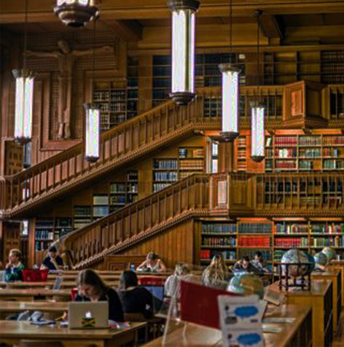控制藏書區(qū)和閱覽區(qū)。藏書區(qū)采用多功能傳感器控制和定時控制。當(dāng)藏書區(qū)開放時自動開啟1/3隔燈照明,保證基本照度。有人進入時多功能傳感器自動開啟該區(qū)域的燈光,方便取閱。取閱者離開后延時關(guān)閉該區(qū)域燈光以節(jié)約電能。藏書區(qū)停止使用時延時關(guān)燈;閱覽室則采用照度控制和定時控制。照度傳感器根據(jù)室外光照自動控制窗邊燈光和電動窗簾,保證合適的閱讀照度,同時節(jié)約能源。閱覽室停止使用時延時關(guān)燈。