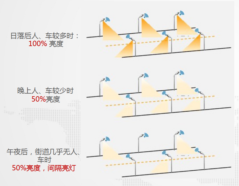 可以設置特殊的照明控制策略,在節(jié)假日期間或者人流量較大的地段,實現(xiàn)區(qū)別性的照明計劃;與其他系統(tǒng)聯(lián)動,在事故發(fā)生地段加強照明亮度;實時指定某些地段的照明亮度。