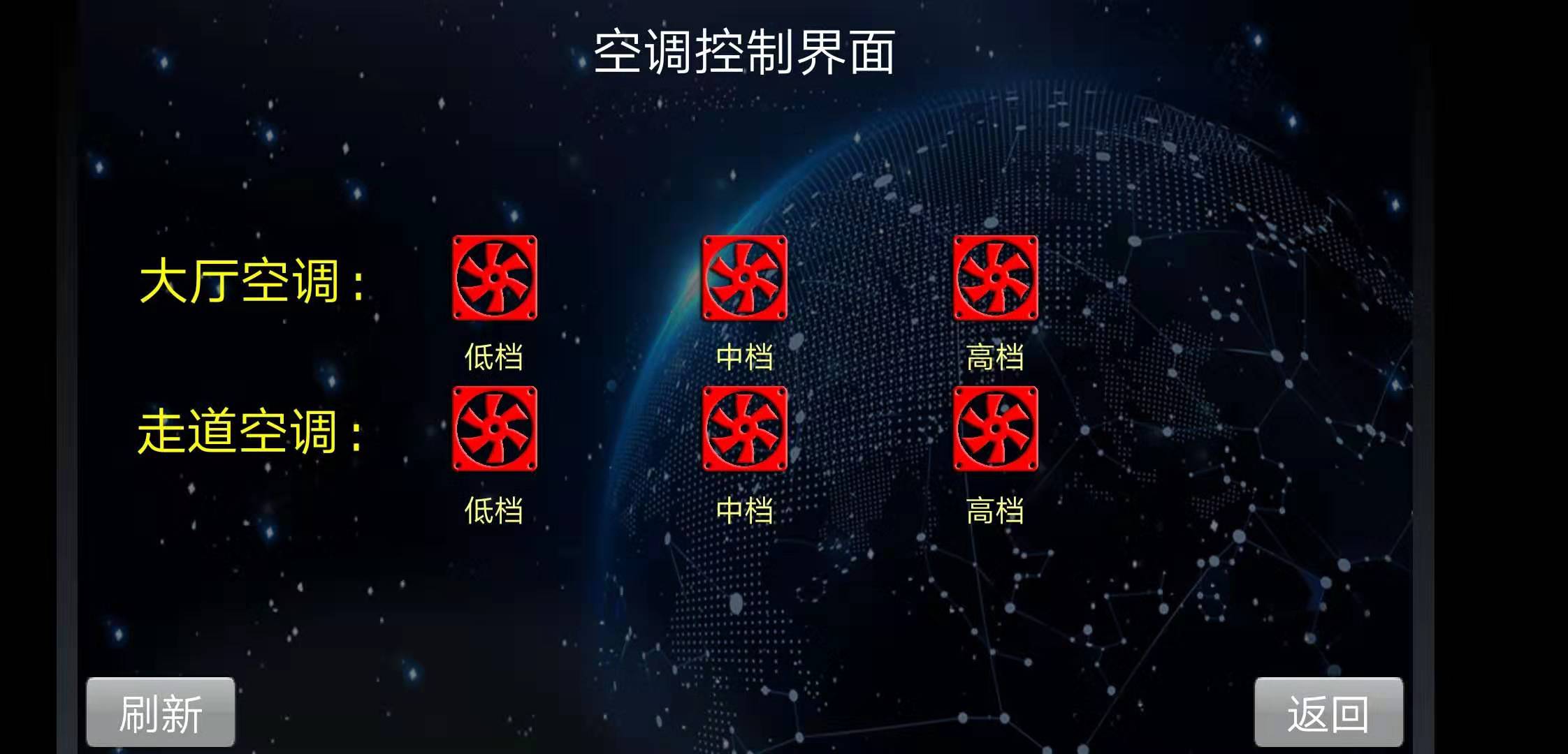 空調:使用了VSU智能照明控制器自帶的互鎖功能,三個回路分別控制空調的高中低三檔,實現(xiàn)檔位的切換功能。